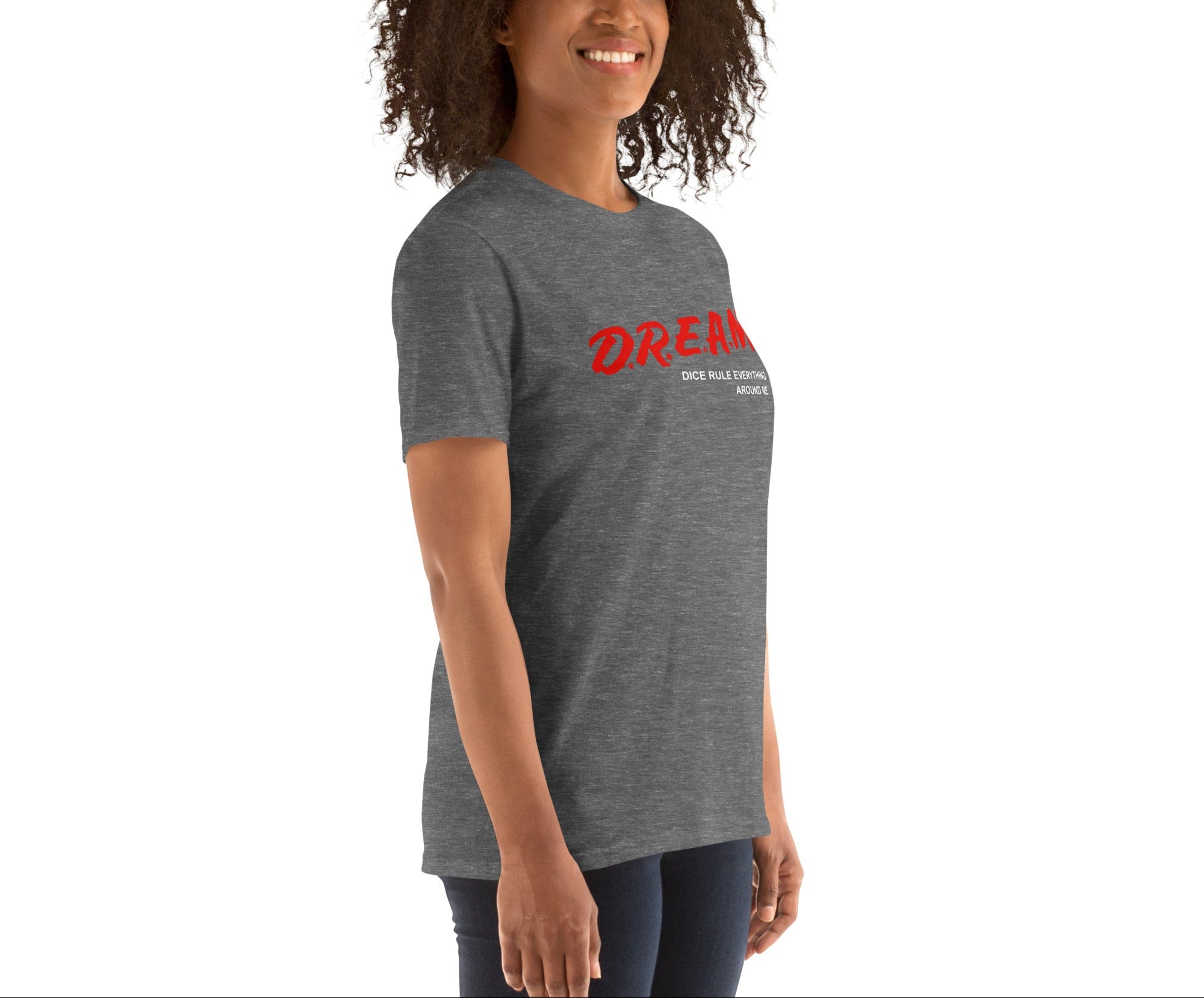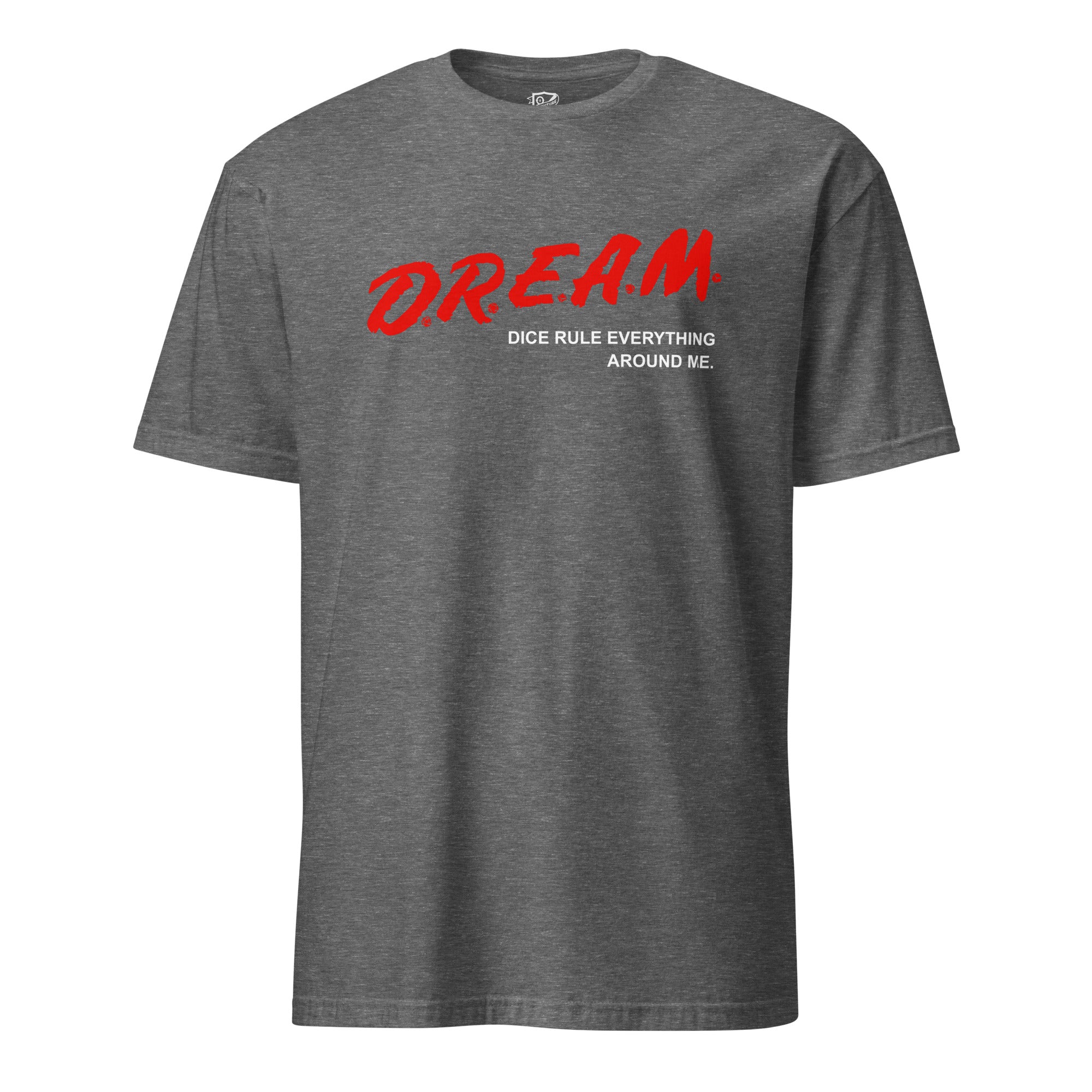 Oxventure presents the D.R.E.A.M. T-Shirt: a bold salute to the tiny polyhedral gods that rule everything around us, at the game table and beyond. The perfect garment for your next game night or the ideal gift for your dice-liking friend.
