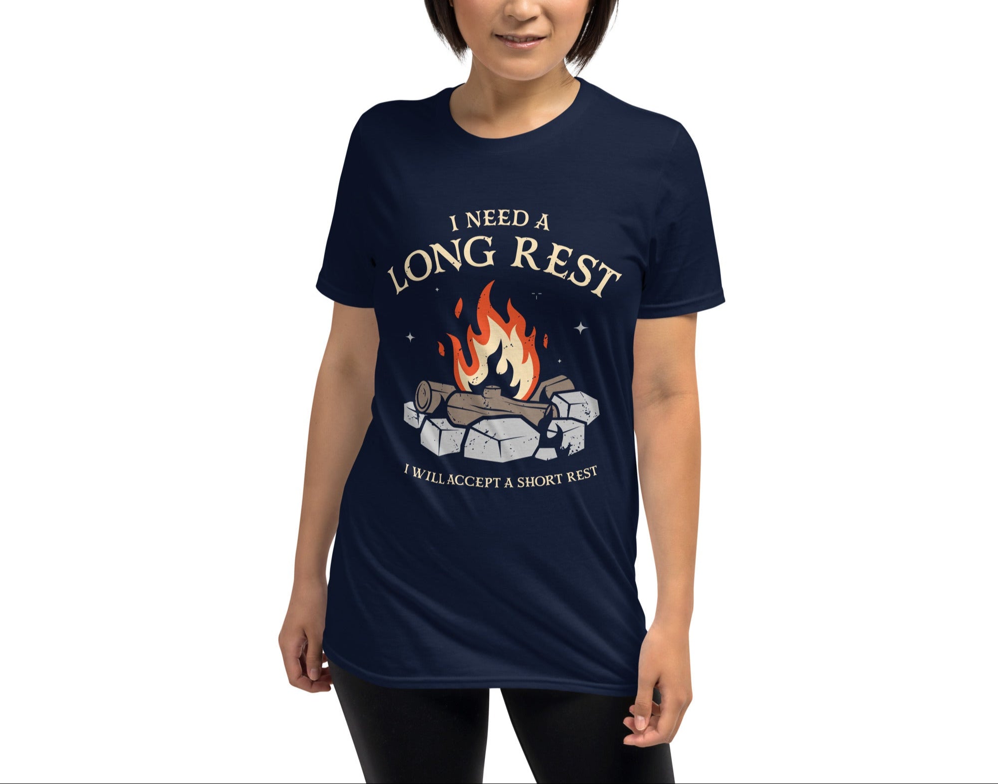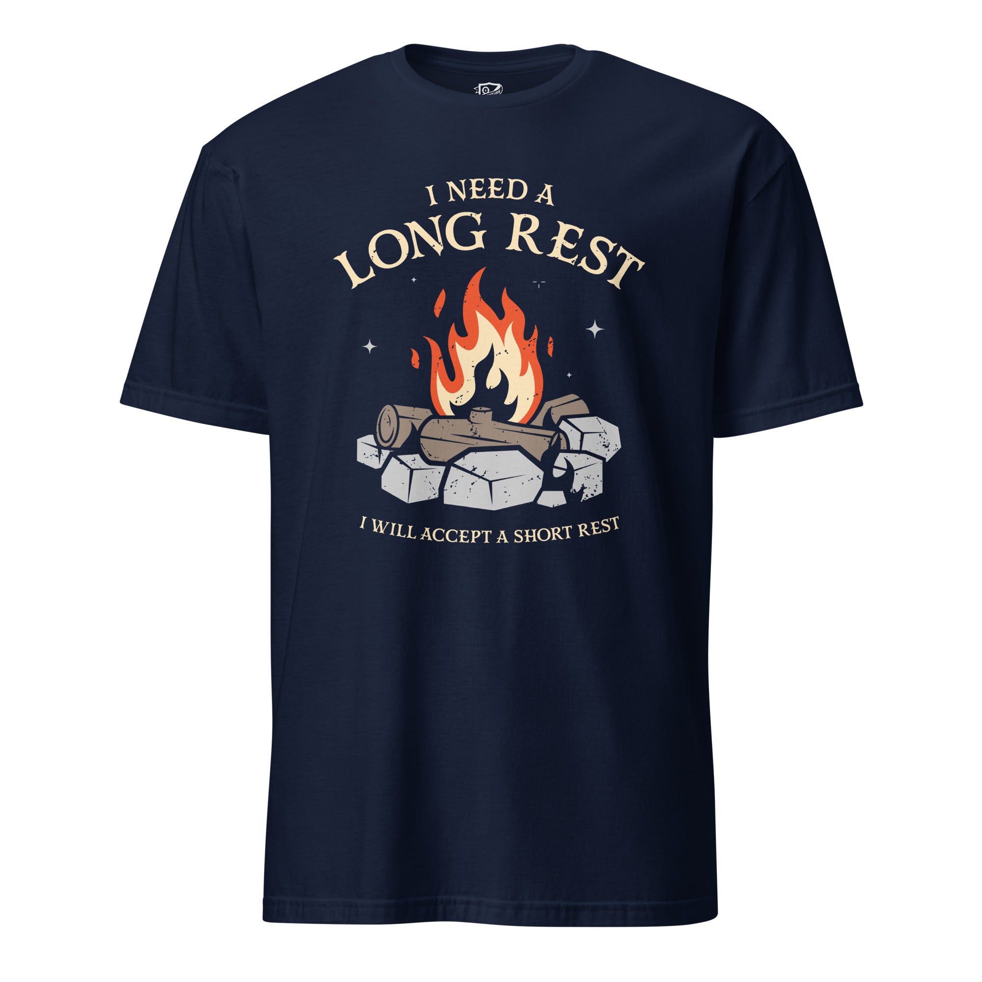 Do you need a long rest? Then you need the Long Rest T-Shirt! There's no better way to tell the world you require eight undisturbed hours of sleepy downtime or, failing that, a little nap. Come back better, more powerful and replete with spell slots after a Long Rest in the stylish Long Rest T-Shirt.